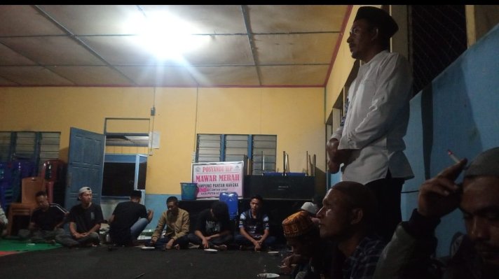 sarak opat kampung mengundang pemuda pemudi serta tokoh masyarakat dan seluruh aparatur kampung di balai desa,tujuan pertemuan dan perkenalan dengan Mahasiswa dan mahasiswi yang akan mengapdi di kampung pantanNangka selama 40 hari kedepan,