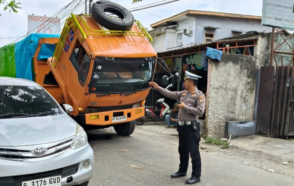 “Mobil Truck bermuatan gula tersebut mogok dari arah simpang 7 menuju Rawa Kucing tepatnya di depan sekolah Arya metta ujar Kanit Lantas.