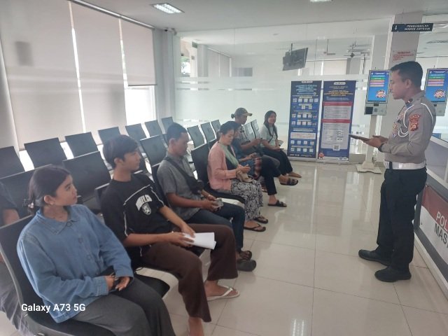 Kanit Regident Satuan Lalu Lintas Polres Karangasem bersama Piket Pemandu melaksanakan pelayan dengan senyum sapa dan salam kepada masyarakat dan mensosialisasikan Leafleat tentang penggolongan SIM C di Gedung Satpas Polres Karangasem. Pada hari ini Senin, 9 Maret 2026