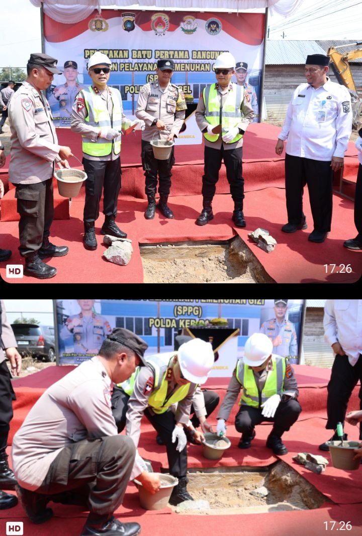 Kapolda Bangka Belitung Irjen Pol Hendro Pandowo melakukan peletakan batu pertama atau groundbreaking pembangunan Satuan Pelayanan Pemenuhan Gizi (SPPG) milik Polda Babel.