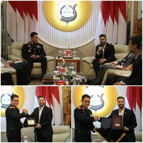Kapolda Bali, Irjen. Pol. Daniel Adityajaya, S.H., S.IK., M.Si., menerima audiensi kunjungan dari delegasi Indonesia Foreign Law Enforcement Community (IFLEC) dan Royal Canadian Mounted Police (RCMP) Liaison Officer (LO), yang bertempat di Lounge Sura Dwipa Sarva Bhavena Polda Bali. Pada Senin, (2/6/2025).