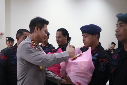 Penyerahan bantuan ini juga dihadiri oleh pejabat utama Polda Bali dan jajaran Satuan Brimob, serta para penerima bantuan.