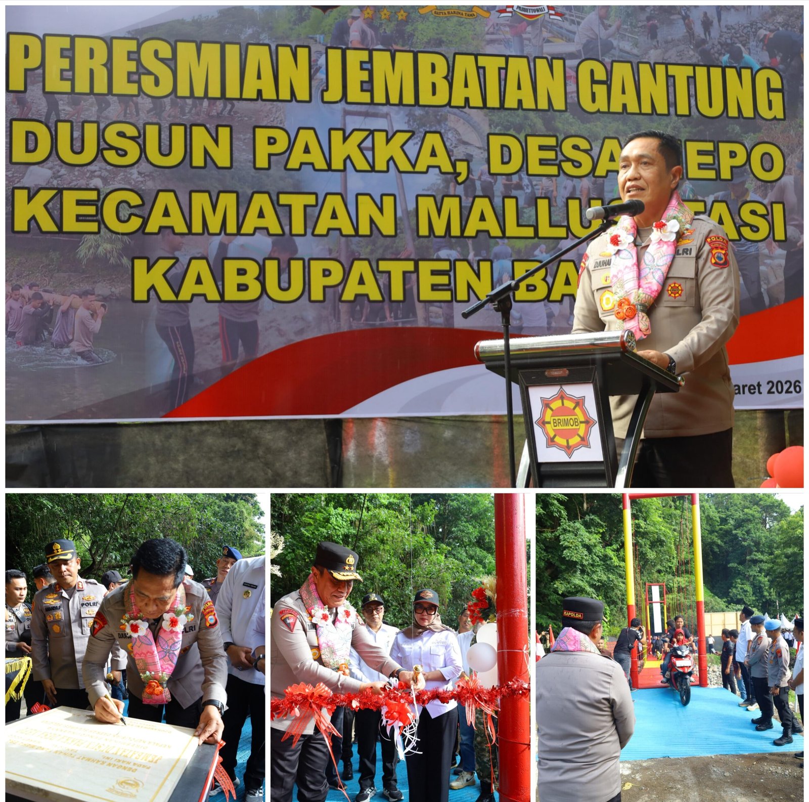 Barru, detikperistiwa.co.id– Kapolda Sulawesi Selatan Irjen Pol. Djuhandhani Rahardjo Puro meresmikan jembatan gantung di Dusun Pakka, Desa Nepo, Kecamatan Mallusetasi, Kabupaten Barru, Rabu (04/03/2026).