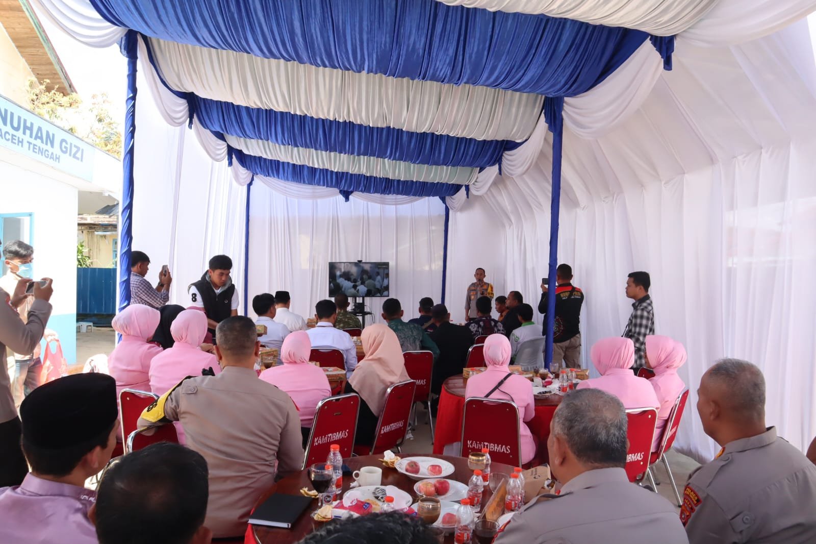 Peresmian SPPG Kemala Bhayangkari Polres Aceh Tengah ditandai dengan pemotongan pita oleh Sekda Aceh Tengah Drs. Mursyid, M.Si., didampingi Kapolres Aceh Tengah dan para tamu undangan, kemudian dilanjutkan dengan peninjauan fasilitas dapur SPPG.