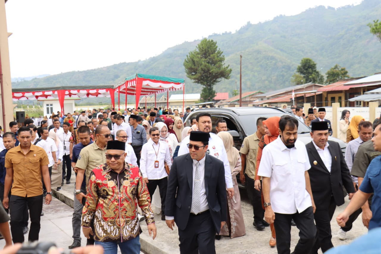 Kapolres Aceh Tengah AKBP Muhamad Taufiq, S.I.K., M.H., mendampingi Gubernur Aceh Muzakir Manaf dalam kunjungan kerja sekaligus serah terima Rumah Sakit Regional Pegasing, Kabupaten Aceh Tengah, pada Selasa pagi (9/9/2025).