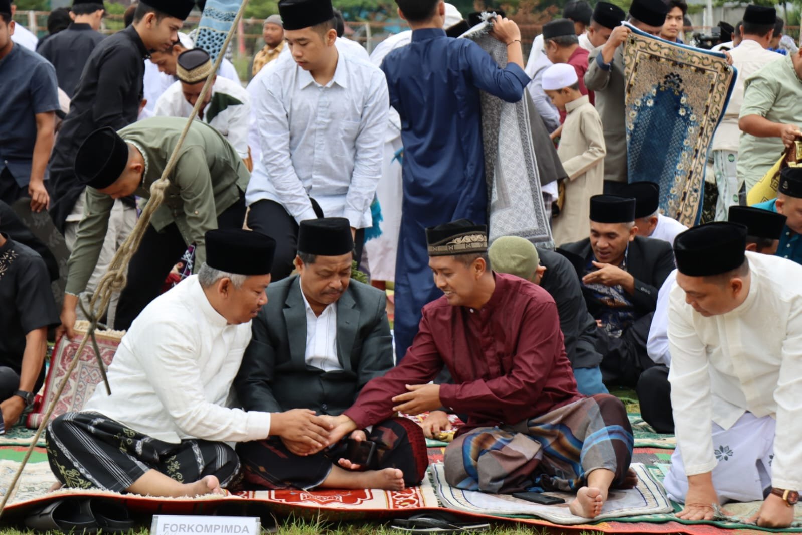 Seusai sholat ied, Kapolres Aceh Tengah melakukan silaturahmi, berjabat tangan dan saling bermaaf-maafan baik antar sesama pejabat Forkopimda Aceh maupun dengan para jamaah sholat ied lainnya, tutur Kariya.