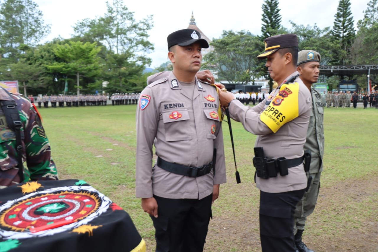 Kapolres Aceh Tengah Akbp Dody Indra Eka Putra,S.I.K,M.H, pimpin Apel Gelar Pasukan Operasi Mantap Praja Seulawah Tahun 2024 dalam rangka pengamanan Pilkada tahun 2024 yang digelar di Lapangan Setdakab Aceh Tengah, pada Rabu 21 Agustus 2024 pukul 08.00 Wib