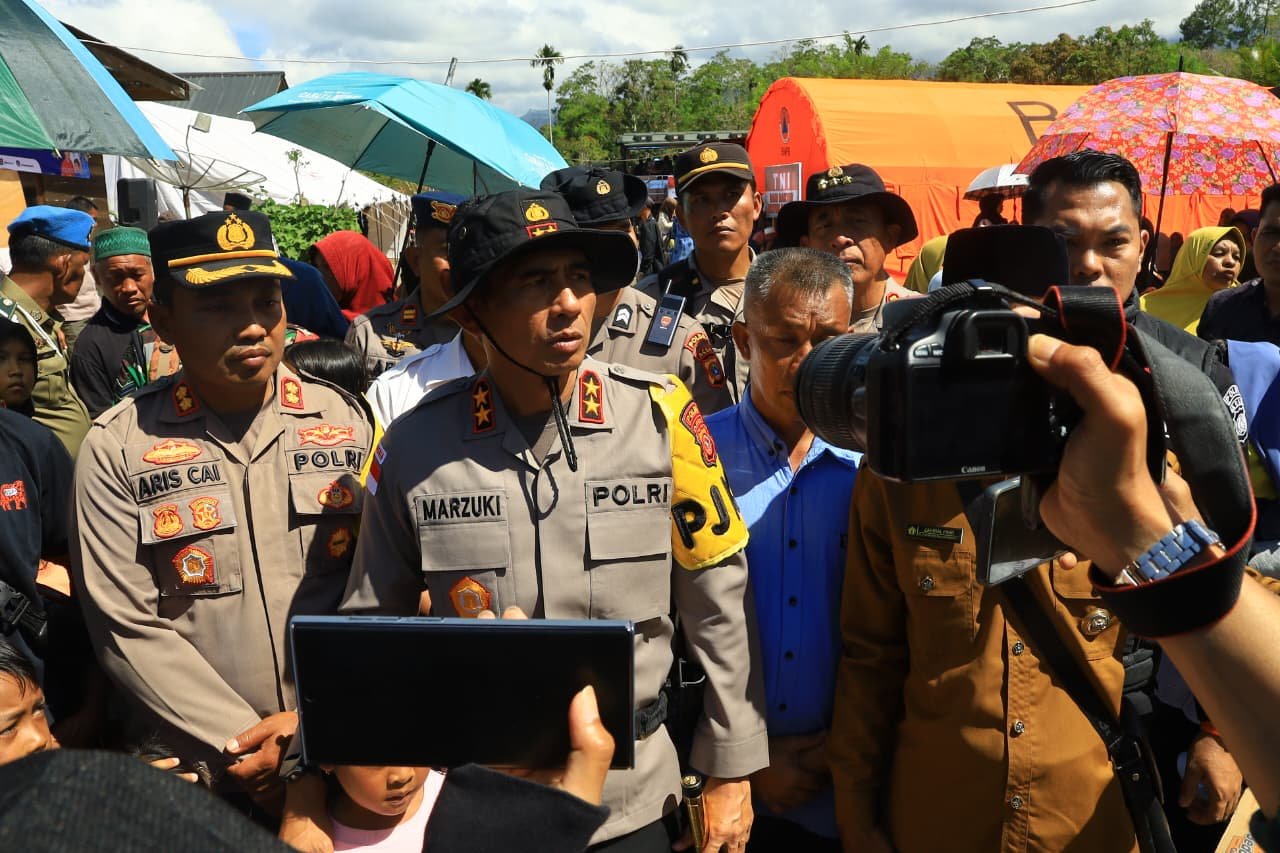 Kapolres Bener Meriah AKBP Aris Cai Dwi Susanto menyampaikan bahwa kehadiran pimpinan Polri di lokasi pengungsian merupakan wujud nyata komitmen Polri untuk selalu hadir, melindungi, dan melayani masyarakat, khususnya saat menghadapi musibah.