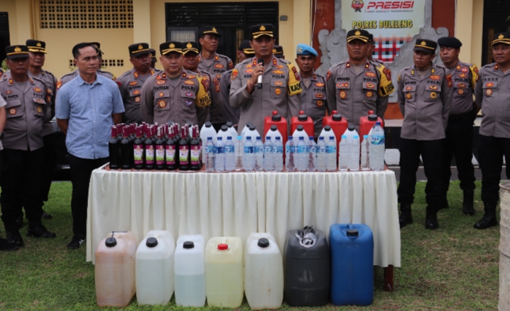 Kapolres Buleleng AKBP I.B. Widwan Sutadi, S.I.K., M.H, selaku pimpinan apel persiapan pengamanan Hari Raya Nyepi Tahun 1946, dilanjutkan dengan Pemusnahan minuman beralkohol (miras). Minggu,10/03/2024, pukul 08.00 Wita berlangsung di Lapangan mapolres Buleleng.