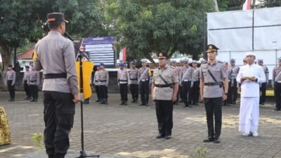 Polres Jembrana menggelar upacara serah terima jabatan ( Sertijab ) Kapolsek Kota Jembrana yang dipimpin langsung oleh Kapolres Jembrana AKBP Endang Tri Purwanto, S.I.K., M.S.i., yang bertempat di Lapangan Apel Mapolres Jembrana. Senin ( 9/9/2024 ).