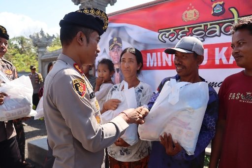 Sebagai bentuk kepedulian Polri terhadap kesejahteraan masyarakat, di akhir acara Kapolres Karangasem menyerahkan 15 paket sembako kepada warga kurang mampu. “Bantuan ini diharapkan dapat meringankan beban ekonomi warga,” tambah AKBP I Nengah Sadiarta.