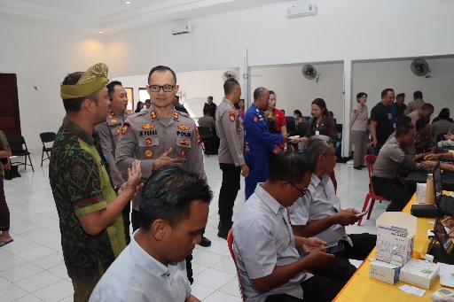 Dalam upaya menjaga kesehatan dan stamina, Kapolres Karangasem AKBP Joseph Edward Purba, S.H., S.I.K., M.H., bersama personil Polres Karangasem mengikuti kegiatan cek kesehatan gratis tahap 2 yang diselenggarakan oleh Pemerintah melalui Dinas Kesehatan. Kegiatan ini berlangsung pada Selasa, 2 Oktober 2025, bertempat di Aula Kanya Badra Paramarta Polres Karangasem.