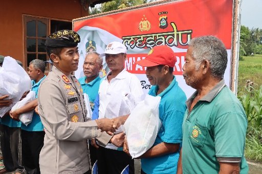 Di akhir acara, Kapolres Karangasem memberikan bantuan berupa paket sembako kepada petani Subak Yeh Sayang sebagai bentuk kepedulian terhadap kesejahteraan petani.