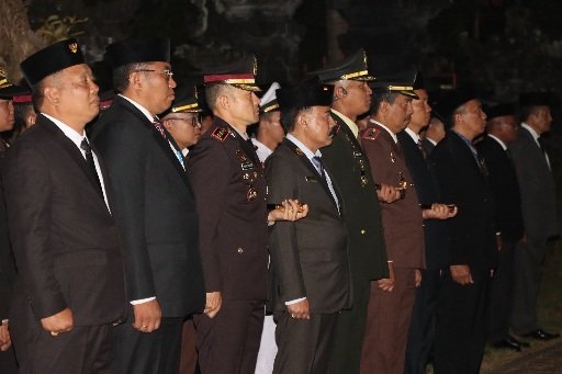 Kapolres Karangasem AKBP Joseph Edward Purba, S.H., S.I.K., M.H., bersama Forum Komunikasi Pimpinan Daerah (Forkompimda) Kabupaten Karangasem mengikuti Apel Kehormatan dan Renungan Suci dalam rangka Peringatan Hari Ulang Tahun ke-80 Kemerdekaan Republik Indonesia Tahun 2025 di Tugu Pahlawan “Ciung Wanara” Amlapura. Pada Sabtu, (16/8/2025).