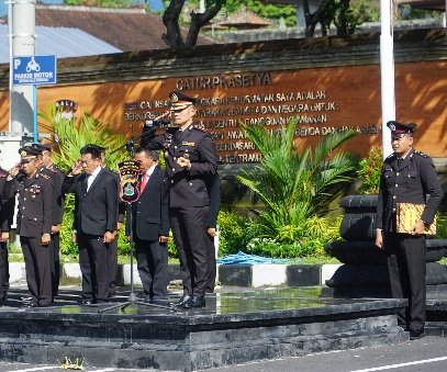 Upacara dipimpin langsung oleh Kapolres Karangasem AKBP Joseph Edward Purba, S.H., S.I.K., M.H., selaku Inspektur Upacara.