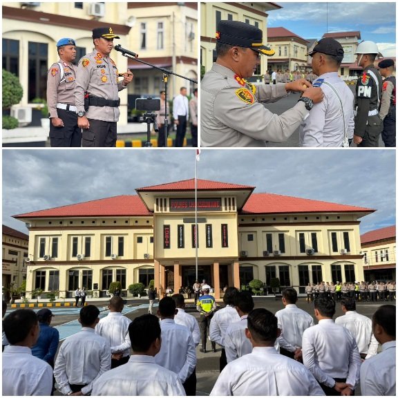 Kapolres Lhokseumawe AKBP Dr. Ahzan, S.H., S.I.K., M.S.M., M.H. memimpin apel gelar pasukan Operasi Lilin Seulawah 2025 yang digelar di halaman Satya Haprabu Polres Lhokseumawe, Jumat pagi (19/12/2025).