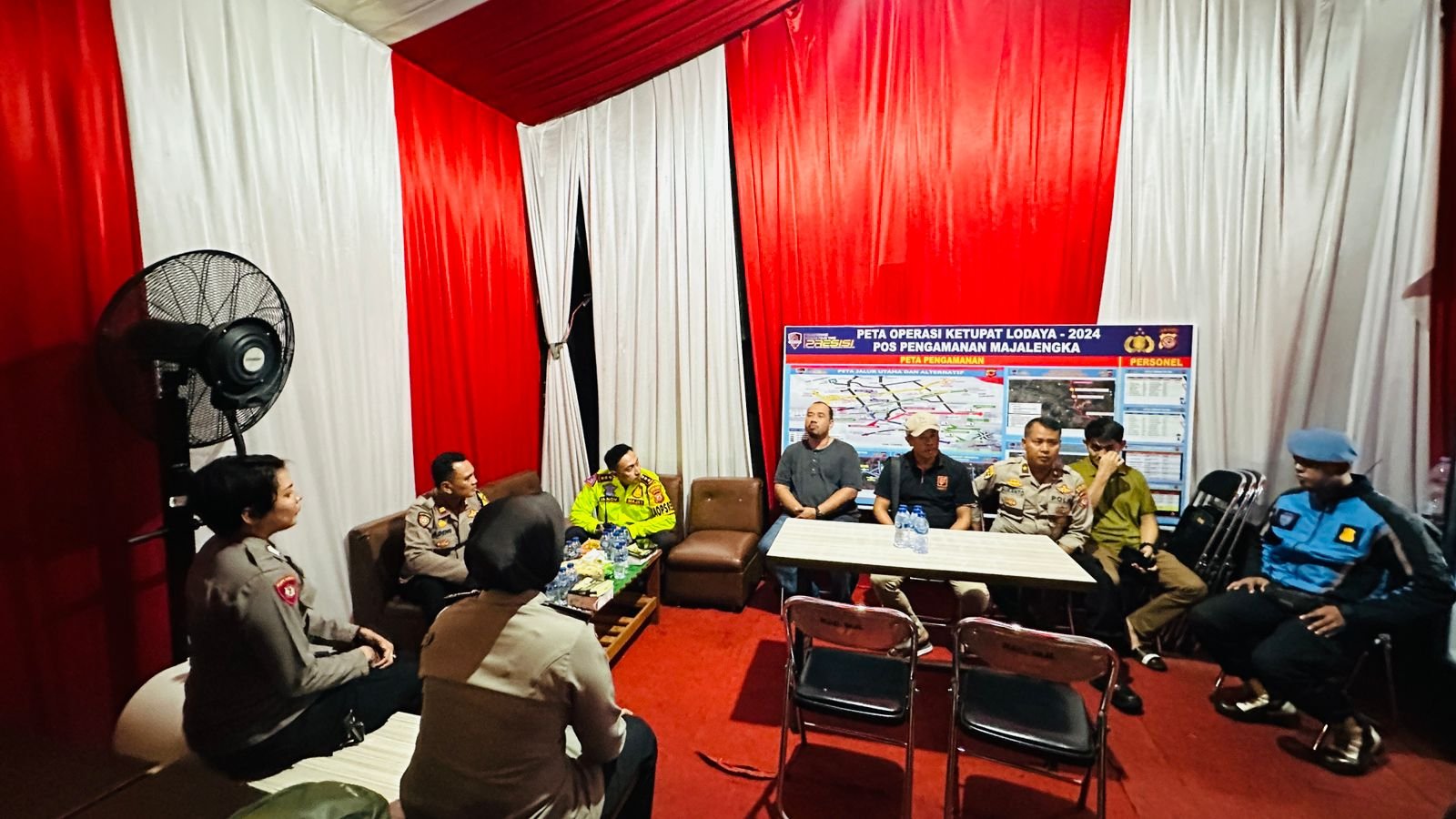 Kapolres Majalengka, AKBP Indra Novianto, S.I.K, M.Si., CPHR, menunjukkan komitmen yang kuat terhadap keselamatan dan kelancaran arus lalu lintas dengan melakukan pengecekan langsung di Pos Pam Ops Ketupat Lodaya 2024 di Jalur Arteri wilayah hukum Polres Majalengka. Kegiatan ini dilakukan pada malam hari guna memantau situasi kamseltibcarlantas, terutama dalam menghadapi arus balik pemudik.Minggu (14/4/2024).