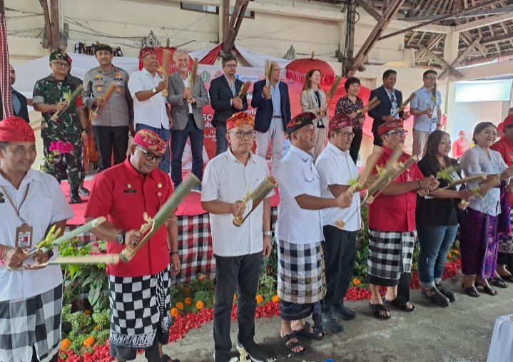 Kemudian acara dilanjutkan dengan peresmian Subak Bengkel sebagai salah satu Demonstration Site UNESCO yang ditandai dengan pemukulan alat tradisional penghalau burung.