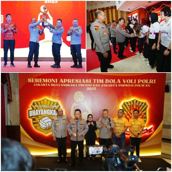 Kapolri Jenderal Listyo Sigit Prabowo menyampaikan selamat kepada tim putra-putri Voli Polri yaitu Jakarta Bhayangkara Presisi dan Popsivo Polwan yang berhasil meraih juara satu dan dua dalam PLN Mobile Proliga 2025.