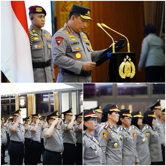 Polri menggelar Upacara Laporan Kenaikan Pangkat untuk periode 1 Januari 2025, yang berlangsung di Rupattama Mabes Polri, Jakarta. Dalam kegiatan ini, sebanyak 10.548 personel perwira menerima kenaikan pangkat sebagai bentuk penghargaan atas dedikasi dan pengabdian mereka terhadap institusi dan masyarakat.