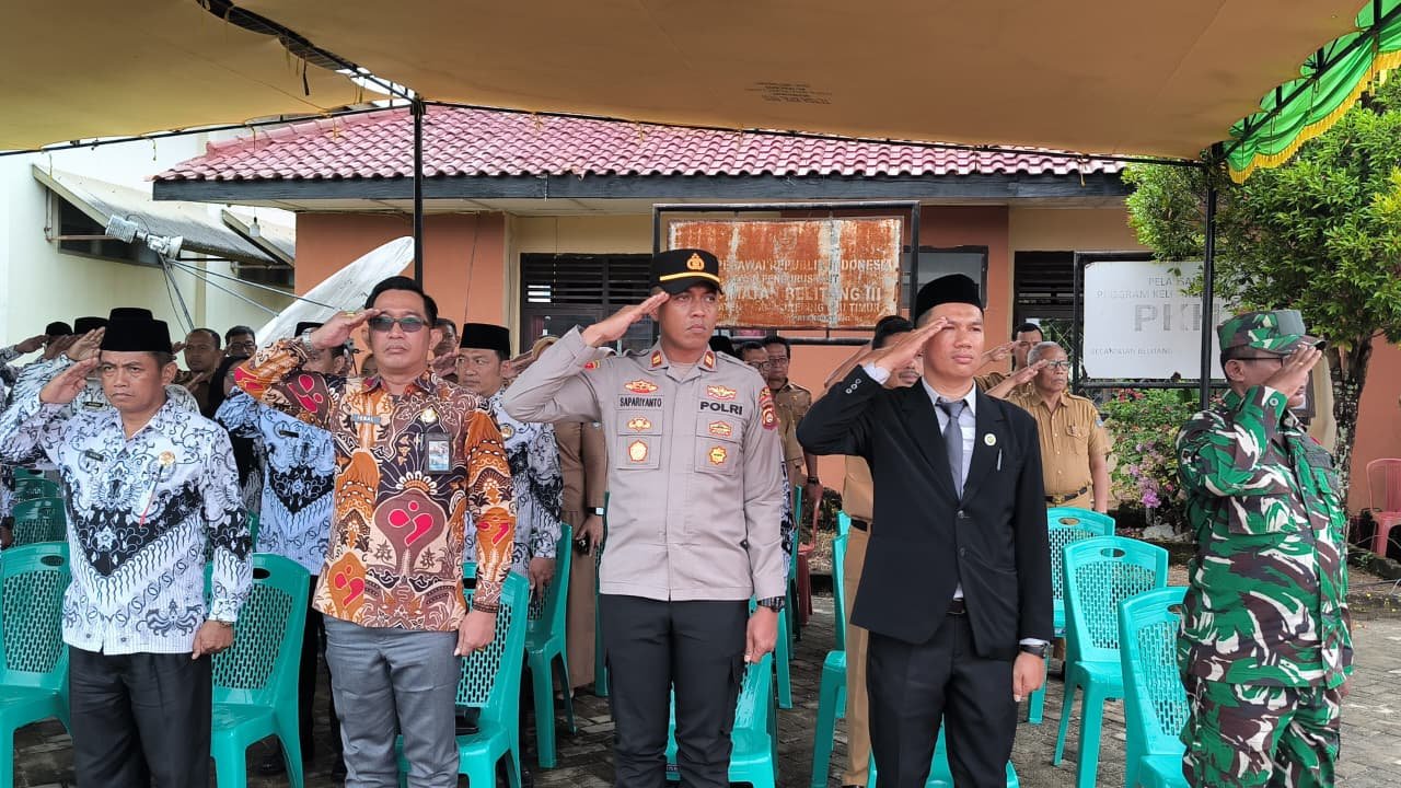 Dihadiri langsung oleh camat Belitang III Sandra Darma Bakti.S,K.M,.M,M.,bersama Kapolsek Belitang III,Iptu Sapariyanto.S,H.,Danramil Belitang diwakili oleh Babinsa Sertu Julianto,Sekcam Belitang III Fince Lonarisa Fasa.S,E.,pengurus PGRI kecamatan Belitang III Warnu.S,Pd.sD,UPTD bersama tim medis puskesmas Nusa Bakti,kepala KUA Belitang III,panitia pelaksana upacara,pol PP ,staf kecamatan Belitang III,para kepala Sekolah dan para Guru serta para siswa-siswi SD s/d SMA se-kecamatan Belitang III.Dalam giat upacara tersebut dihadiri -+ 1000 orang yang ikut memeriahkan HUT PGRI ke-80 dan Hari Guru Nasional Tahun 2025,mengusung tema”Mari Kita Jaga Marwah Guru Untuk Mewujudkan Guru Hebat Indonesia Maju”,sebelumnya acara juga dimeriahkan oleh penampilan Mercing Band dari SMA Negeri I Belitang III.Selama kegiatan berlangsung berjalan hikmad,tertib,dan lancar,kegiatan acara berakhir sekira pukul,09.00 wib.(Ali Wardana).