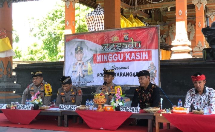 Kapolsek Karangasem Kubu AKP. I Gusti Agung Bagus Suteja, S. IP. MH., mendampingi Kapolres Karangasem AKBP I Nengah Sadiarta, S.I.K., S.H., M.K.P., beserta pejabat utama Polres Karangasem menggelar program Minggu Kasih di wantilan Pura Puseh Desa Adat Baturinggit, Desa Batu Ringgit, Kecamatan Kubu Kabupaten Karangadem, Minggu (28/4/2024).