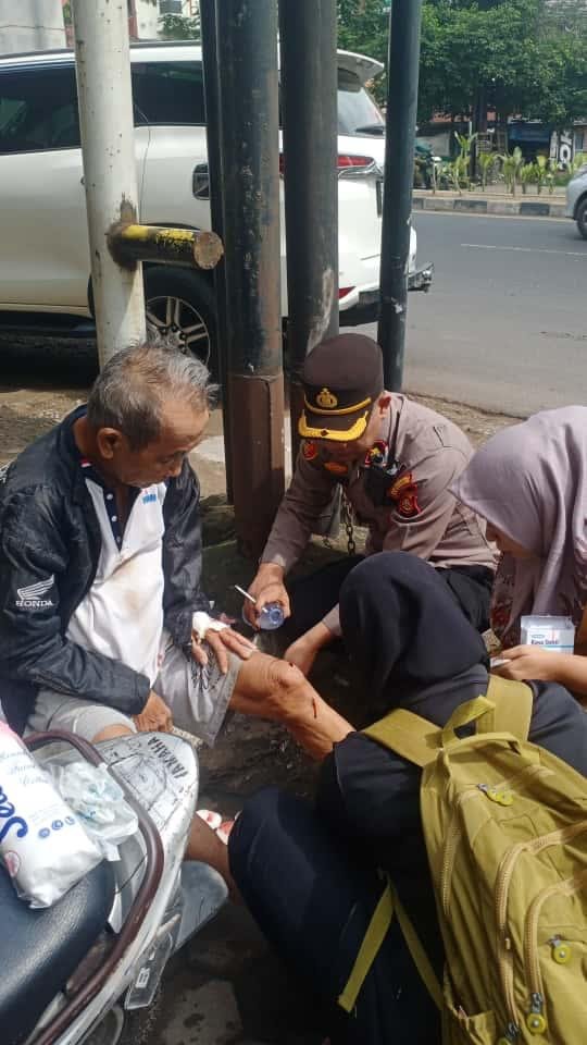 Pada Senin pagi (20/10/2025), Kapolsek Sukarami Palembang, Kompol Alex Andriyan, menunjukkan sikap sigap dan tanggap dalam memberikan pertolongan kepada seorang warga lansia yang mengalami kecelakaan tunggal di wilayah hukum Polsek Sukarami.