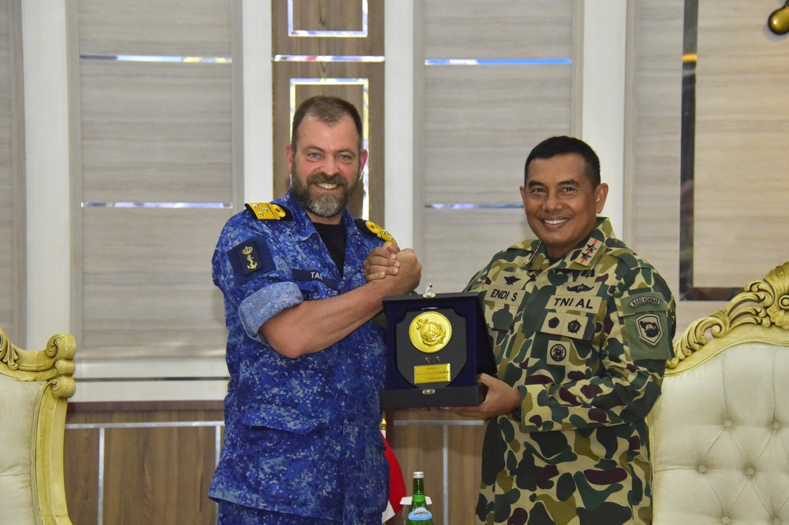 Hadir mendampingi _Commander of the Royal Netherlands Navy_ _Vice Admiral R.P (Rene) Tas, LCDR Joske Liefaard Asisten Chief of Staff, CPO René Heeringa Chief Petty Officer, Ms Rosalien Wagenaar Staff Officer International Cooperatio, SGT Leon Klunder Sergeant 2nd Marine Group, Colonel Norbert Moerkens Defence Attaché._