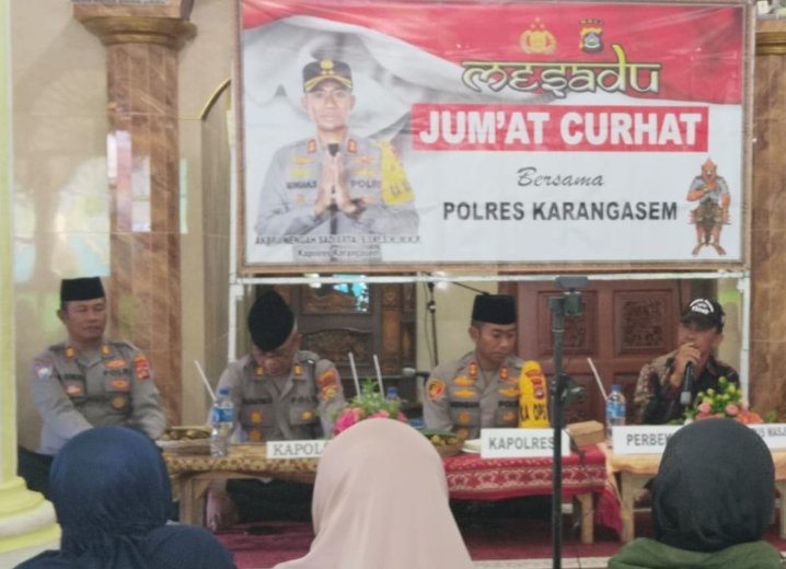 Jum’at Curhat merupakan program dari Mabes Polri dengan tujuan membangun kemitraan kepada masyarakat didalam membangun kamtibmas dan meningkatkan intensitas untuk lebih sering bertatap muka dari pimpinan Polres Karangasem didalam menyerap aspirasi kepada masyarakat dan memberikan informasi terkait dengan situasi kamtibmas diwilayah Kabupaten Karangasem Jum’at (19/7/2024).