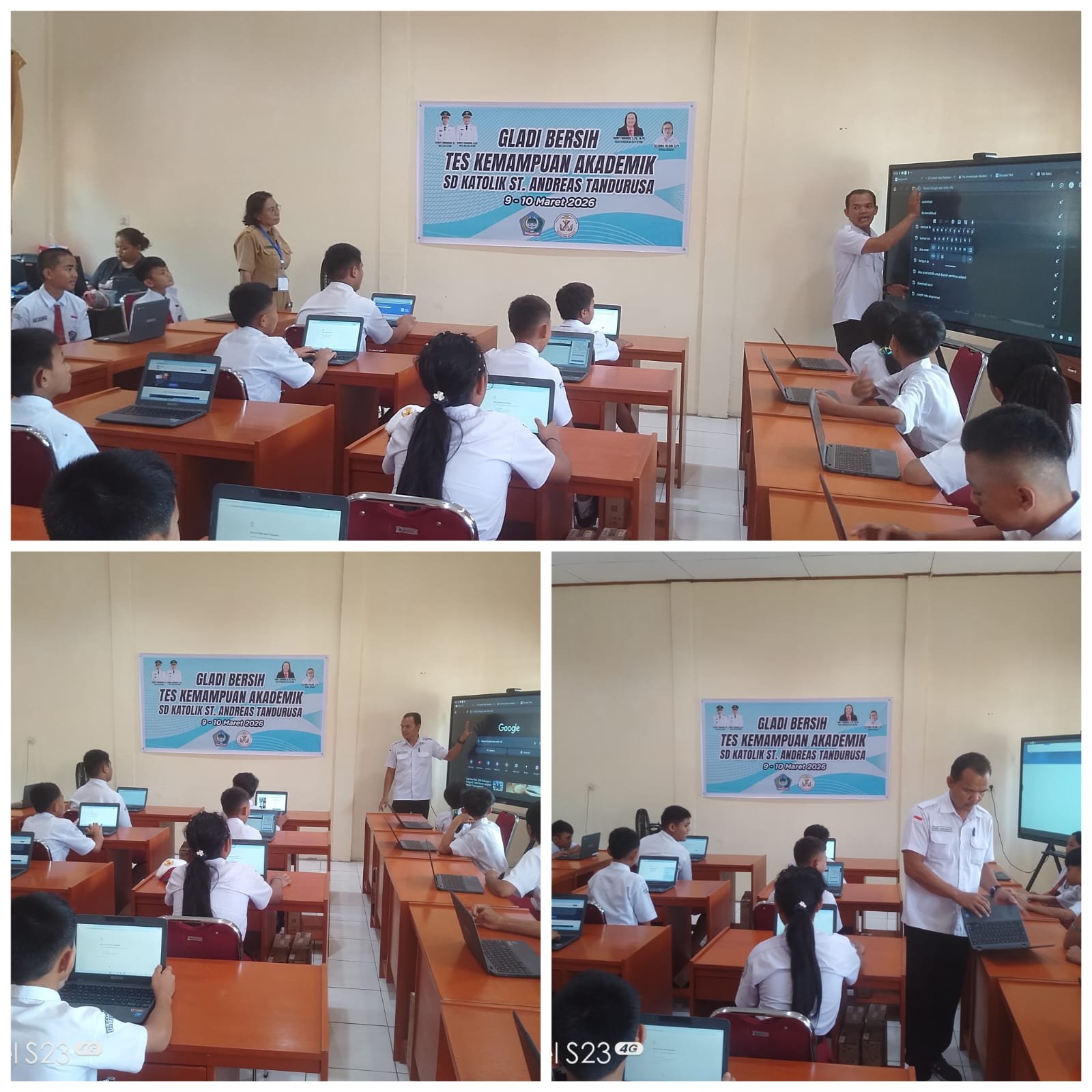 Dalam pelaksanaan gladi bersih Tes kemampuan akademik selama dua hari Senin 9 – 10 Maret 2026 terus dipantau oleh Kepala SD Katolik ST, Andreas Tandurusa Selerina Toluan, S.Pd.