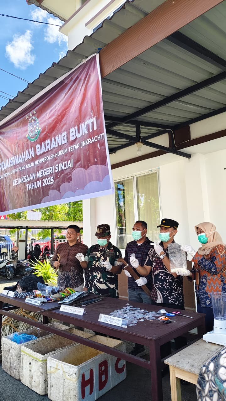 Bahwa dengan dilakukannya pemusnahan barang bukti yang telah berkekuatan hukum tetap ini menjadi bukti nyata keseriusan Kejari Sinjai dalam menjalankan fungsi penegakan hukum dengan memastikan seluruh barang bukti tindak pidana yang sudah inkracht benar-benar dimusnahkan sesuai ketentuan hukum yang berlaku.