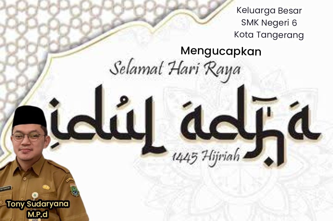 Tony Sudaryana M.Pd selaku Kepala Sekolah SMKN 6 Kota Tangerang Mengucapkan Selamat Hari Raya Idul Adha kepada seluruh peserta didik,guru,staf serta masyarakat yang merayakan idul Adha.”semoga momentum Idul Adha membawa berkah dan kebahagiaan bagi kita semua. Mari kita sambut Hari Raya ini dengan hati penuh syukur, dan kepedulian terhadap sesama,”ucapnya.