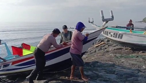 Ketika melaksanakan patroli di pesisir Pantai Ujung, Tumbu, Karangasem, melihat warga Nelayan sedang menarik jukung yang kekurangan tenaga penarik untuk mendorong jukung agar bisa menepi ke pantai, disini kesigapan anggota Polairud Polres Karangasem dengan turun langsung membantu Kelompok Nelayan untuk mendorong jukung ketepi pantai.