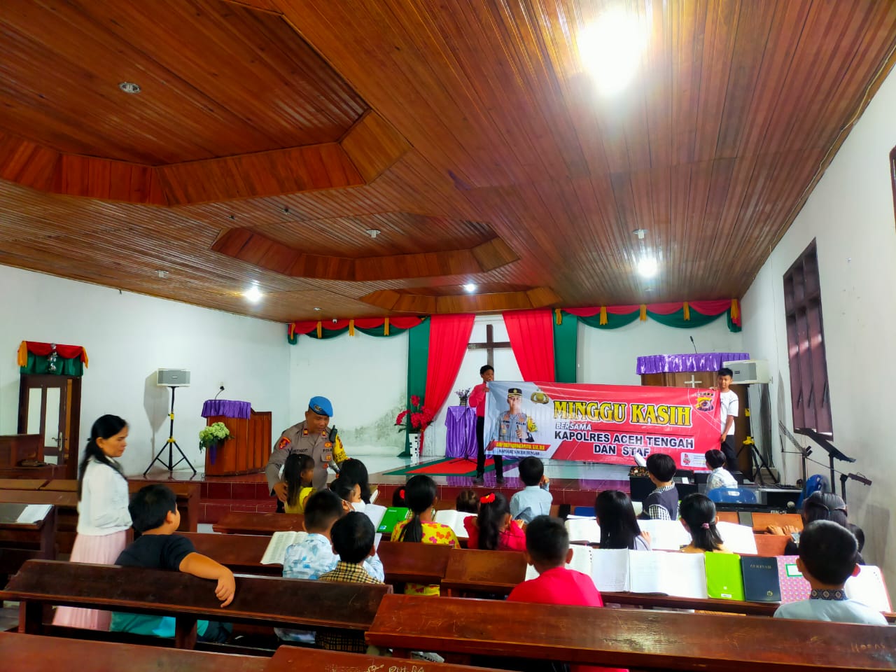 Kegiatan Minggu Kasih dilaksanakan Kasi Propam Polres Aceh Tengah Iptu Ermy Jerianto Hutasoit bertujuan untuk mempererat hubungan antara kepolisian dengan komunitas di sekitar.