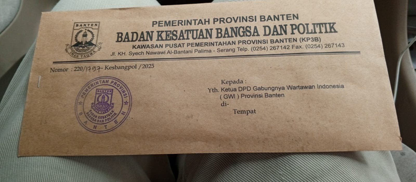 Banten ll detikperistiwa.co.id ll Organisasi Gabungnya Wartawan Indonesia (GWI) DPD Provinsi Banten resmi menerima Surat Pemberitahuan dari Badan Kesatuan Bangsa dan Politik (Kesbangpol) Provinsi Banten dengan nomor surat 220/1797-Kesbangpol/2025. Penyerahan surat tersebut berlangsung pada Jumat pagi di kantor Kesbangpol Banten. (24/10/2025)