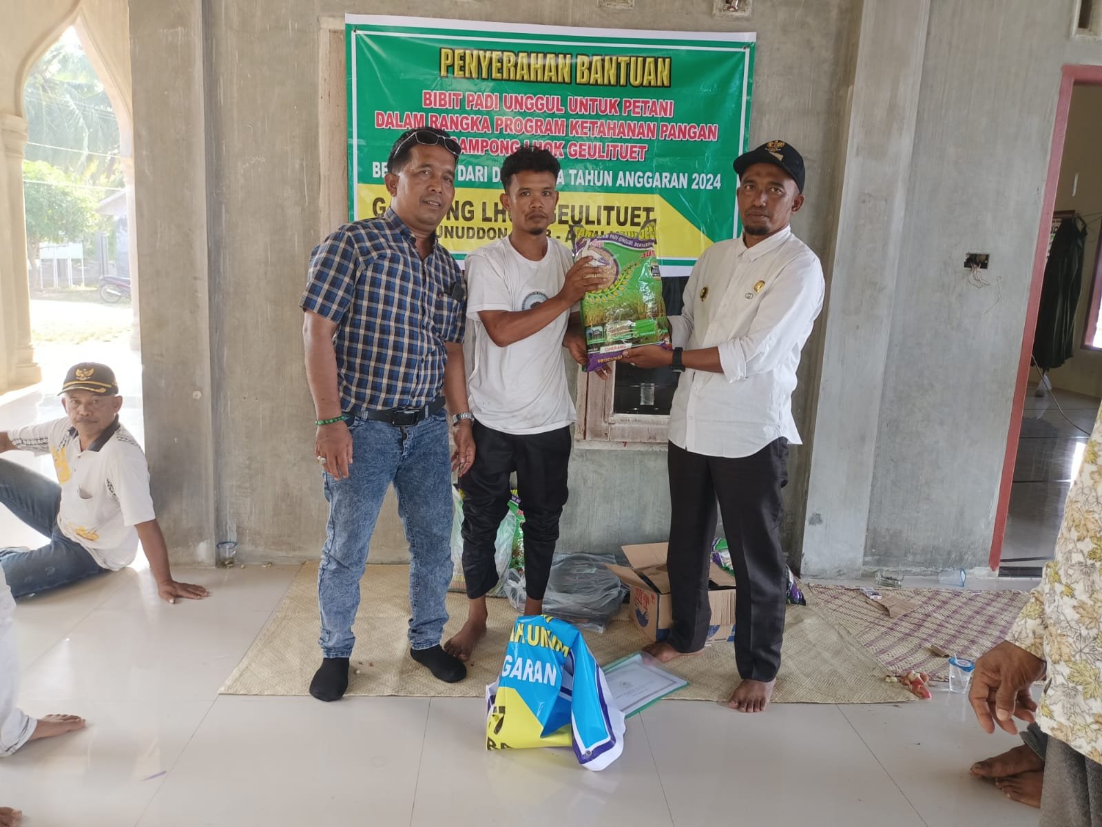 Dalam 1 KK satu sak benih padi unggul jadi jumlah 101 KK maka bibit unggul padi yang dibagi 101 sak bibit padi dengan jumlah anggaran Rp 14.000.000. anggaran tersebut diambil dari ketahanan pangan untuk sejahterakan petani dan anak sekolah.