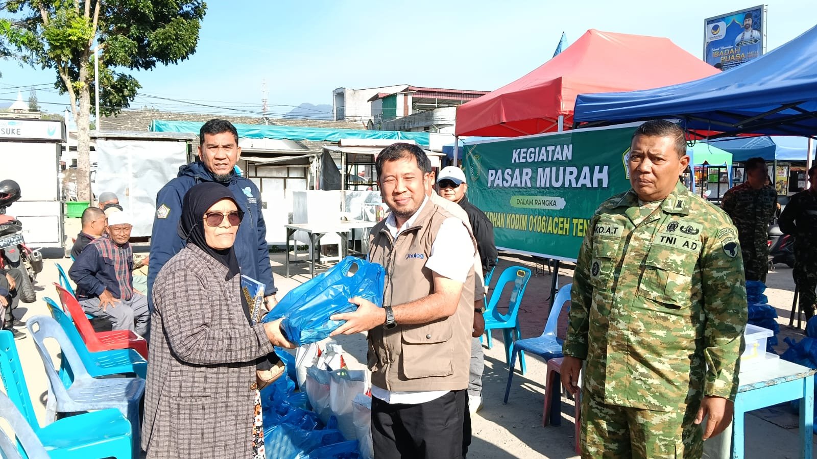 Kodim 0106/Aceh Tengah bersama Pemerintah Daerah Kabupaten Aceh Tengah menggelar kegiatan pasar murah untuk membantu masyarakat mendapatkan kebutuhan pokok dengan harga terjangkau. Kegiatan tersebut berlangsung di Lapangan Sanggamara, Jalan Sengeda, Kecamatan Lut Tawar, Kabupaten Aceh Tengah, pada Jumat (6/03/2026).