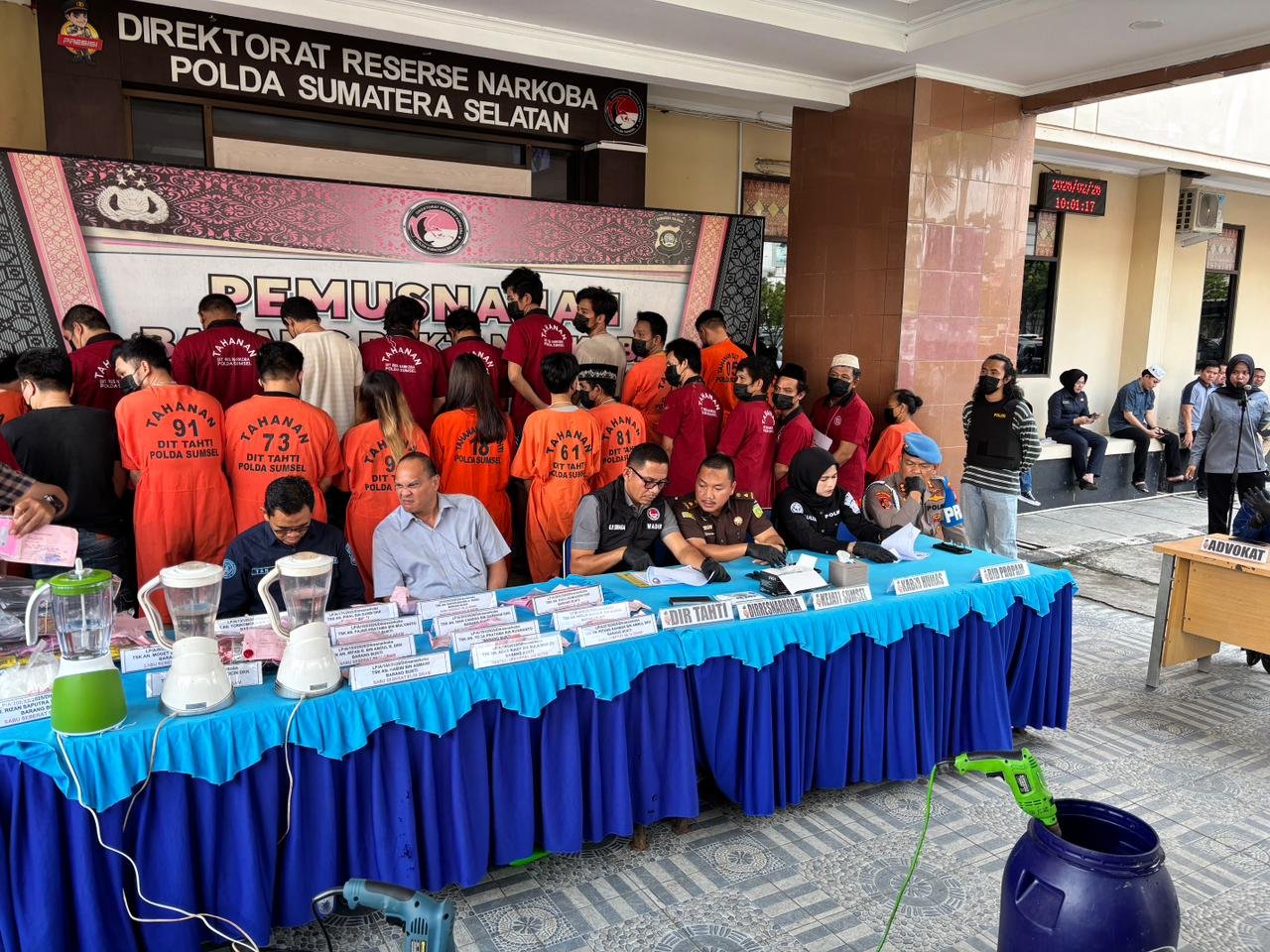26 Februari 2026 – Polda Sumsel kembali menegaskan komitmennya dalam perang melawan narkotika nasional dengan memusnahkan barang bukti sabu, ekstasi, dan etomidate senilai Rp5,7 miliar hasil pengungkapan 18 laporan polisi.