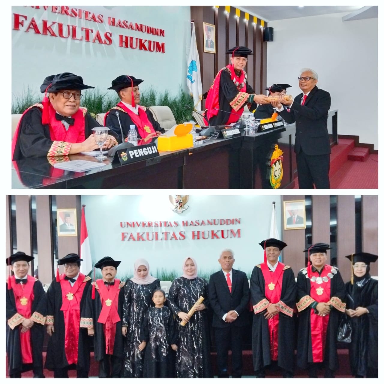 Sidang promosi doktor dipimpin Ketua Sidang sekaligus Promotor Prof. Dr. Hamzah Halim, S.H., M.H., M.A.P., dengan Co-Promotor Prof. Dr. Amir Ilyas, S.H., M.H. Sementara itu, penguji eksternal dalam sidang tersebut adalah Wakapolda Sulawesi Tengah, Brigjen Pol. Dr. Helmi Kwarta Kusuma, S.I.K., M.H.