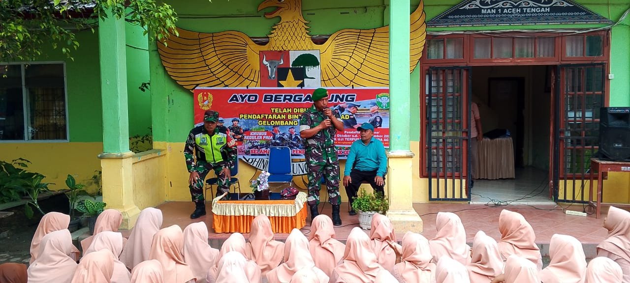 Koramil / 02 Bebesen, Kodim 0106 Aceh Tengah melaksanakan Kegiatan di halaman sekolah MAN Negeri 1 Takengon dan dihadiri oleh puluhan peserta, didampingi oleh guru. Dalam rangka mempersiapkan generasi muda yang tangguh dan disiplin, pihak TNI Angkatan Darat menggelar sosialisasi khusus bagi anak-anak yang berkeinginan bergabung dalam seleksi Bintara TNI AD gelombang 2.