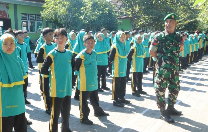 Babinsa Loloan Timur (Kopka Mahfud) beserta 3 anggota Koramil 01 Negara melaksanakan kegiatan Pelatihan LKBB (Latihan Keterampilan Baris Berbaris) kepada siswa-siswi baru MTsN 4 Jembrana tahun pelajaran 2024 – 2025, bertempat di Halaman Sekolah MTsN 4 Jembrana, (Rabu, 17 Juli 2024).