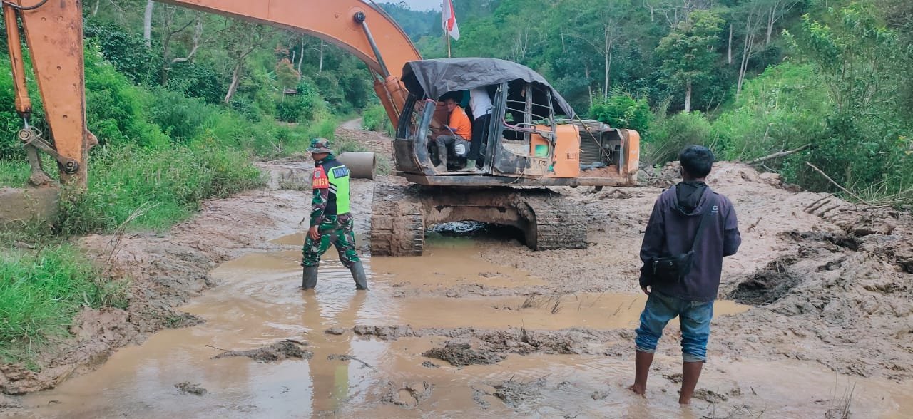 Pengawasan lapangan dilakukan oleh Sertu Agung Sutrisno selaku anggota Koramil 03/Pegasing. Ia memantau langsung proses kerja alat berat berupa satu unit ekskavator yang dikerahkan untuk membersihkan timbunan tanah dan material longsor di wilayah Desa Tebuk, Kecamatan Pegasing.
