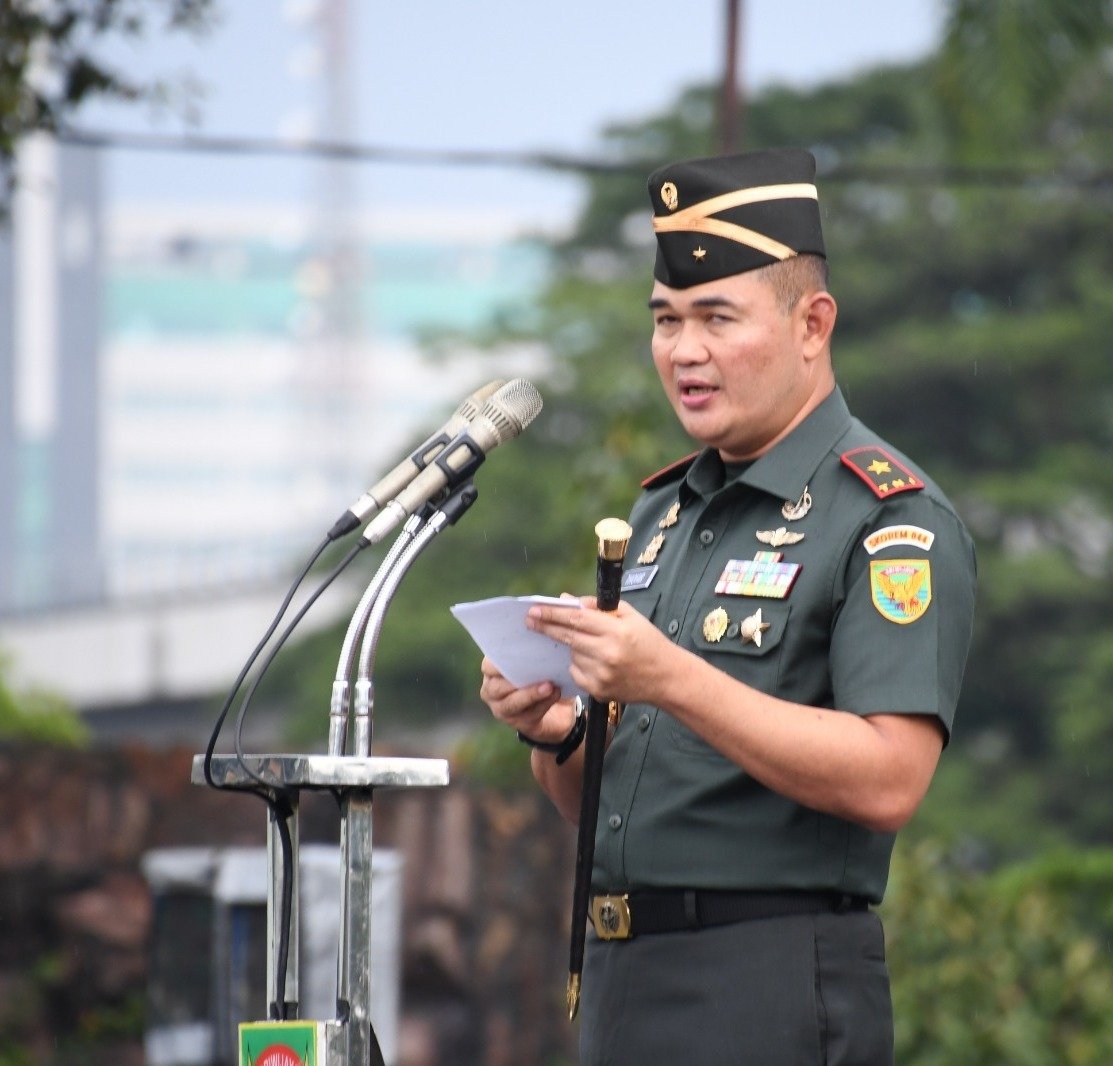 Pada kegiatan tersebut, Danrem 044/Gapo membacakan amanat Pangdam II/Swj Mayjen TNI M. Naudi Nurdika, S.I.P., M.Si., M.Tr.Han.