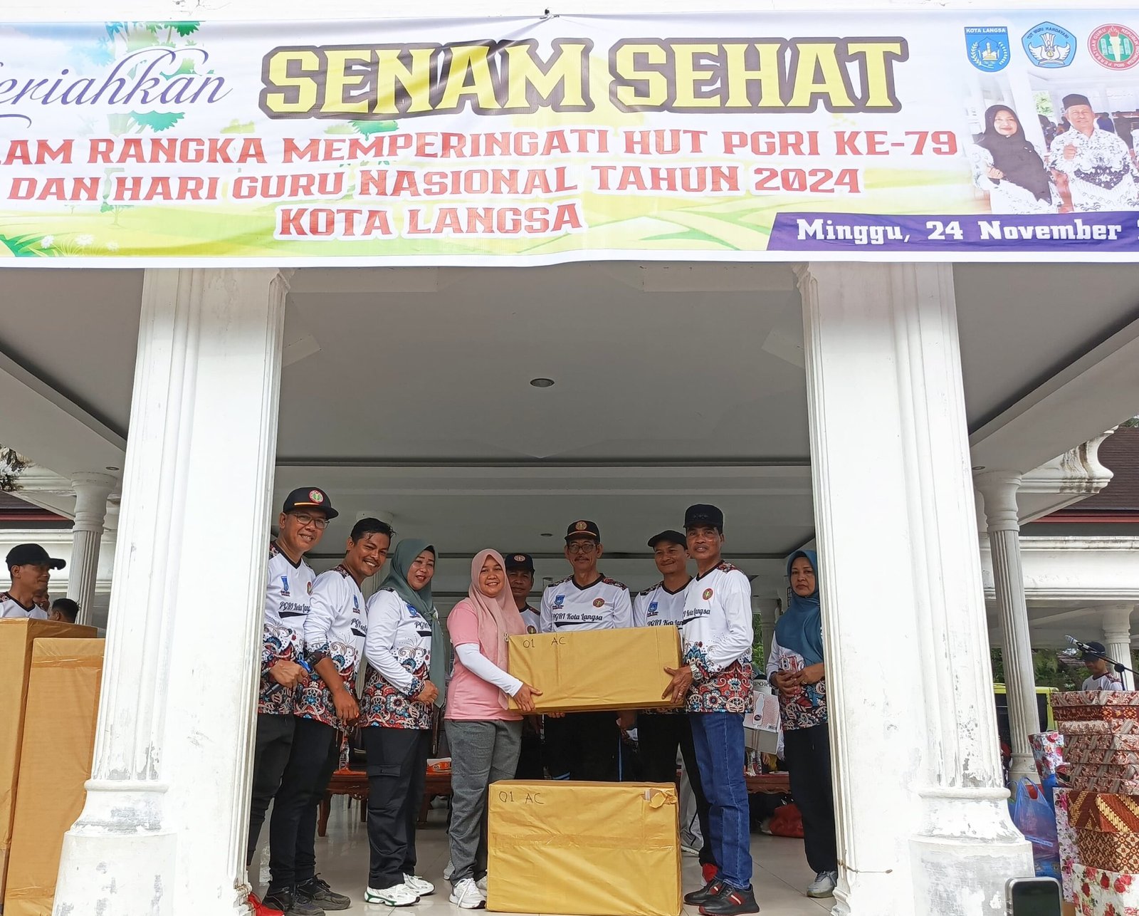 Senam Sehat Massal dalam rangka menyambut Hari Guru Nasional (HGN) dan Hari Ulang Tahun (HUT) Persatuan Guru Republik Indonesia (PGRI) yang ke 79 di Lapangan Merdeka Kota Langsa, Minggu (24/11/2024).