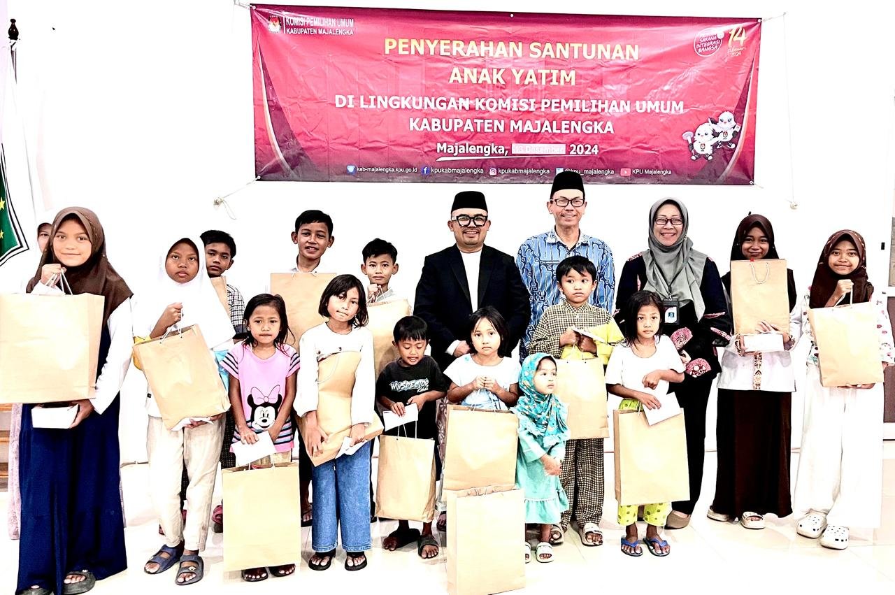 Komisi Pemilihan Umum (KPU) Majalengka melaksanakan agenda rutin dengan bakti sosial pemberian santunan kepada anak yatim piatu di lingkungan KPU Majalengka pada Jumat (13/12/24).