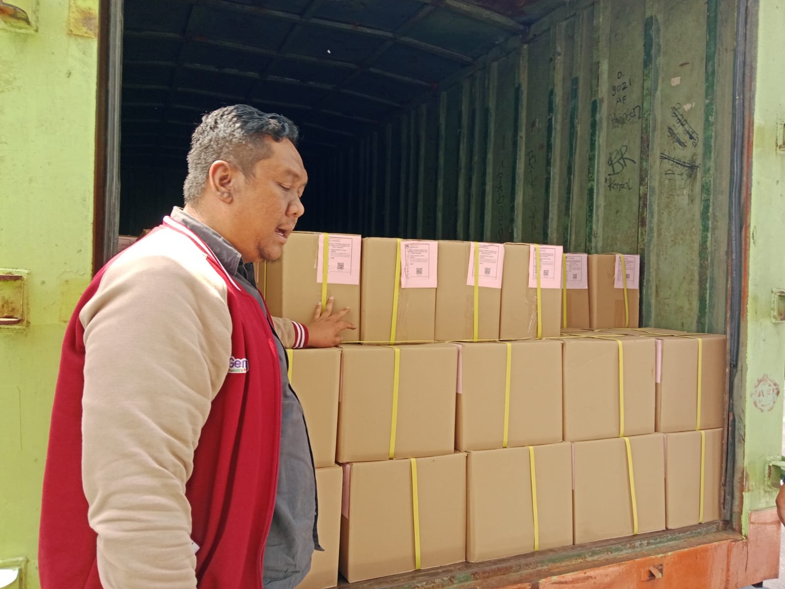 Komisi Pemilihan Umum (KPU) Majalengka menerima Logistik Surat Suara Pilkada Serentak 2024 sebanyak 1 kontainer yang masih tersegel dan diterima langsung Ketua KPU Majalengka pada Senin (28/10/24).