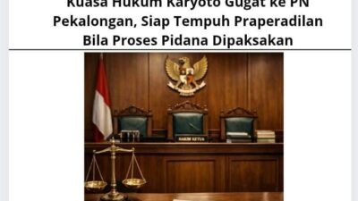 Pekalongan, (GMOCT) – Gabungan Media Online Cetak Ternama (GMOCT) mendapatkan informasi dari media online Kabarsbi yang tergabung di dalamnya terkait pengajuan gugatan perdata oleh kuasa hukum Karyoto, Bambang L A Hutapea, S.H., M.H., C.Med., ke Pengadilan Negeri Pekalongan. Gugatan ini terkait persoalan hukum yang berawal dari Laporan Polisi Nomor: LP/B/02/I/2025/SPKT/POLRES PEKALONGAN/POLDA JAWA TENGAH.