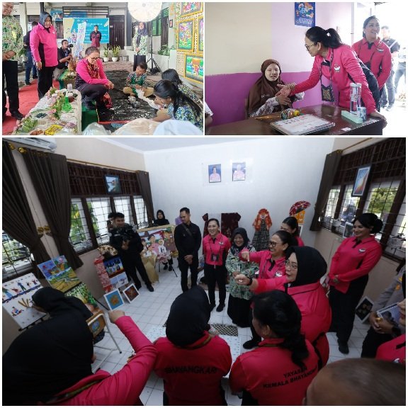 Ketua Pembina Yayasan Kemala Bhayangkari (YKB) Ny. Juliati Sigit Prabowo, didampingi Ketua Pengurus YKB Daerah Jawa Timur, Ny. Ade Imam Sugianto, berkunjung ke Sekolah Luar Biasa (SLB) Kemala Bhayangkari 2 Gresik, Jawa Timur. Pada Rabu, (25/2/2025).