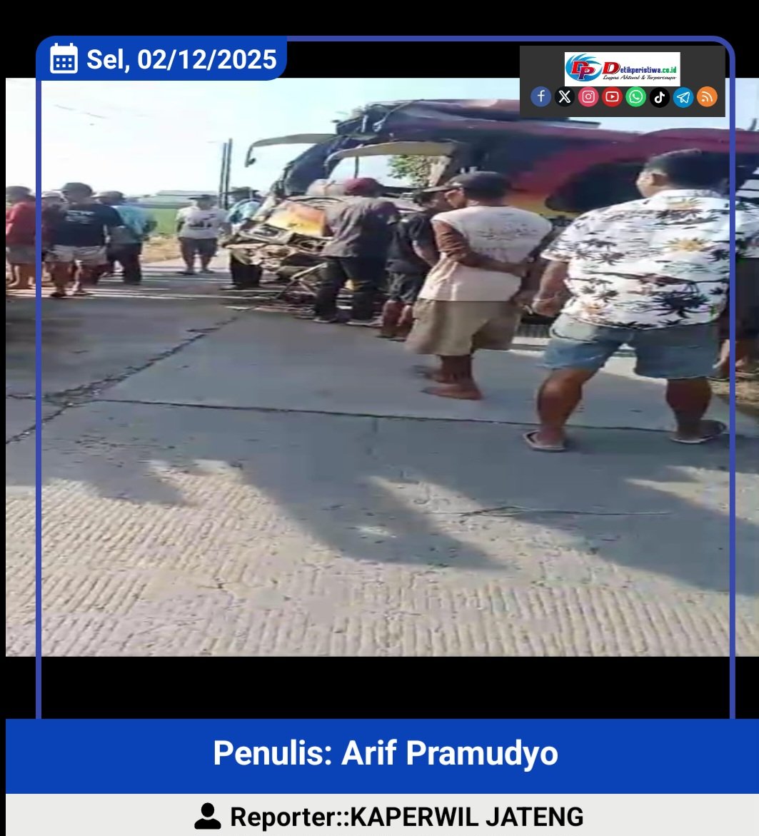 Grobogan, Https//detikperistiwa.co.id- 2 Desember 2025 – Kecelakaan lalu lintas terjadi di Jalan Dusun Taunan, Ngaringan, Grobogan, pada pagi hari ini. Sebuah bus mini bernopol K 7225 NY yang mengangkut 7 anak-anak sekolah MI bertabrakan dengan truk engkel bernopol K 9064 NP yang membawa kayu bongkaran rumah kuno.