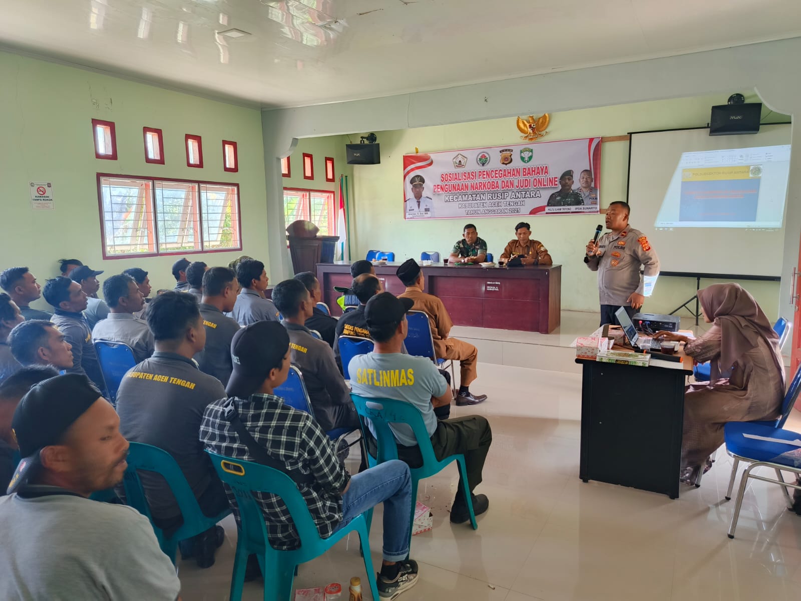 Polres Aceh Tengah terus mengintensifkan upaya pencegahan penyalahgunaan narkoba dan praktik judi online hingga ke tingkat kecamatan. Senin (22/9/2025), Kapolsubsektor Rusip Antara Polsek Silih Nara, IPDA Sunarto, memimpin langsung kegiatan sosialisasi di Aula Kantor Camat Rusip Antara, Kabupaten Aceh Tengah.